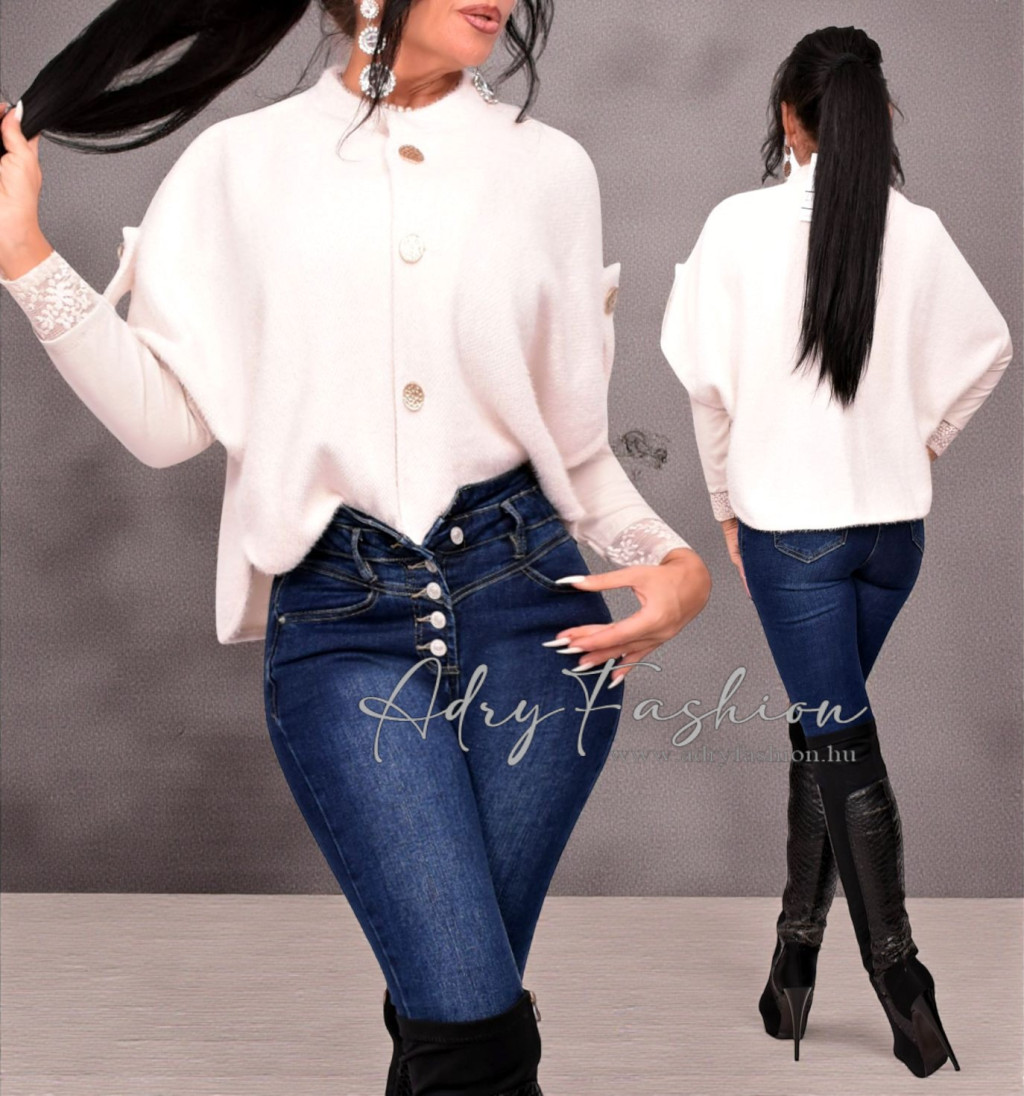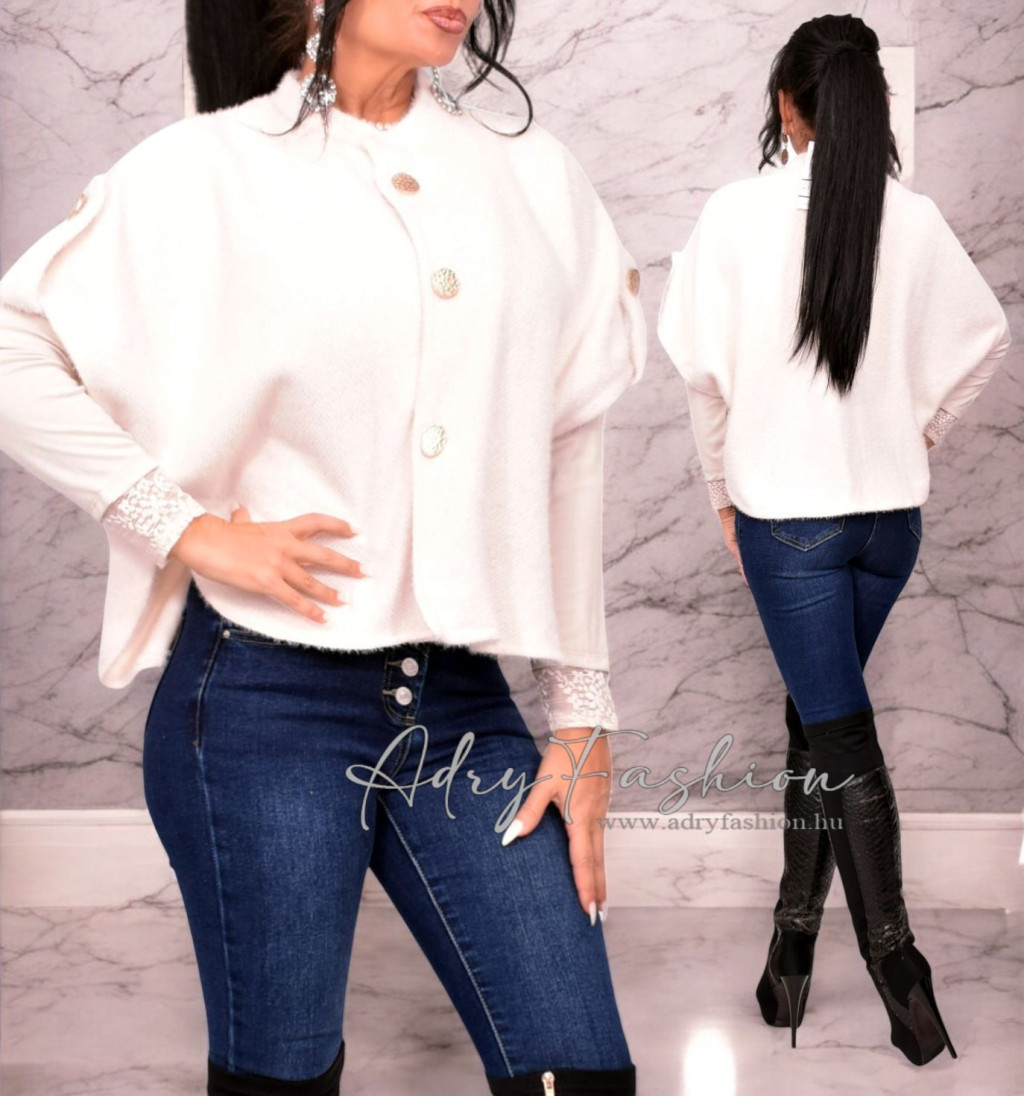 Bézs színű gombos poncsó kardigán