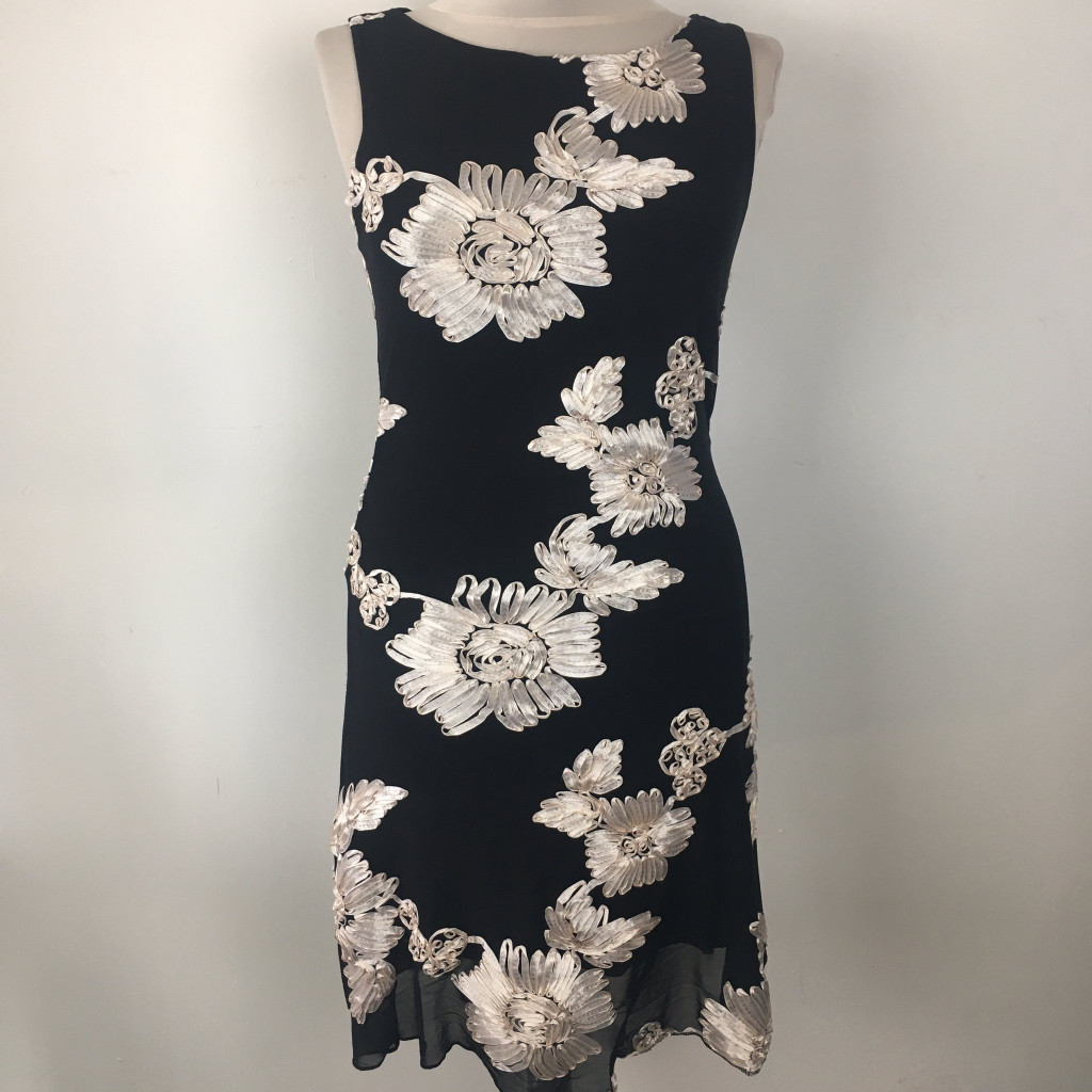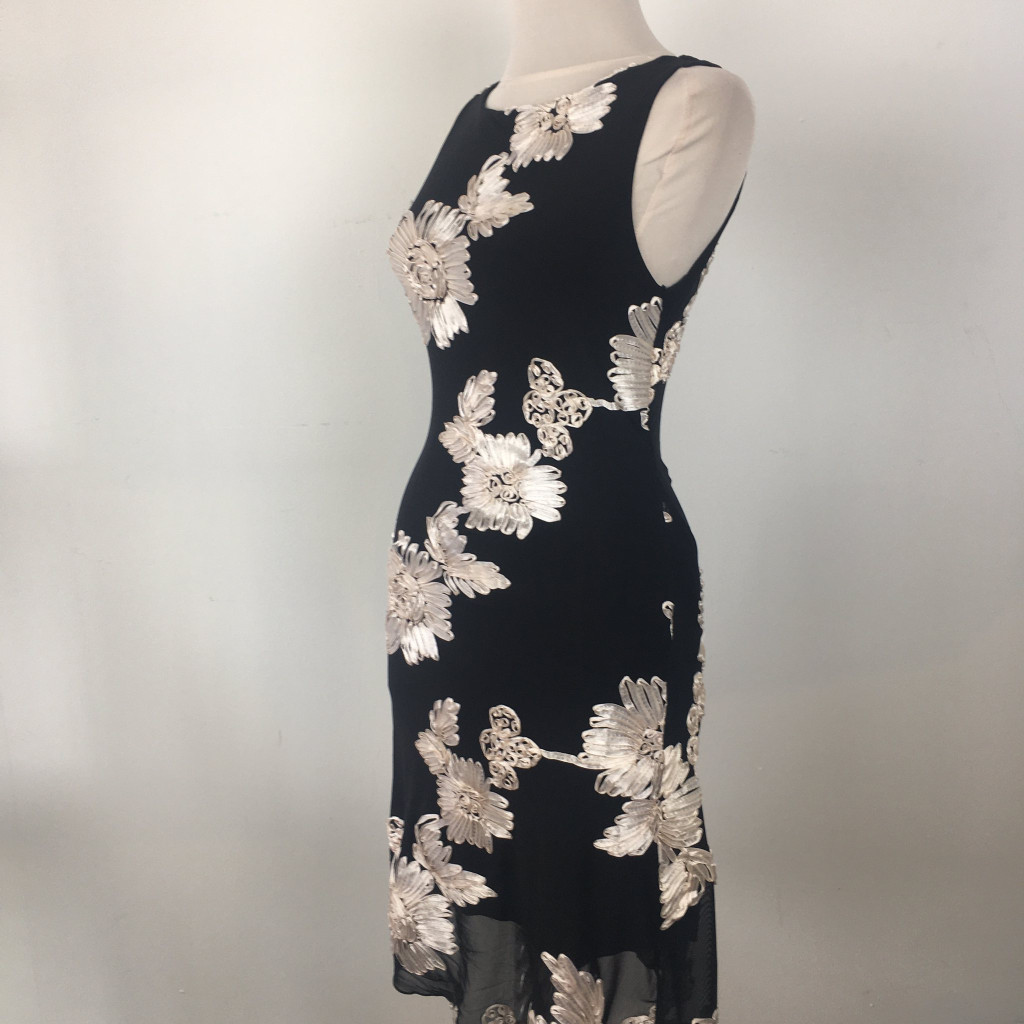 Bori Fekete ekrü virág díszes alkalmi ruha