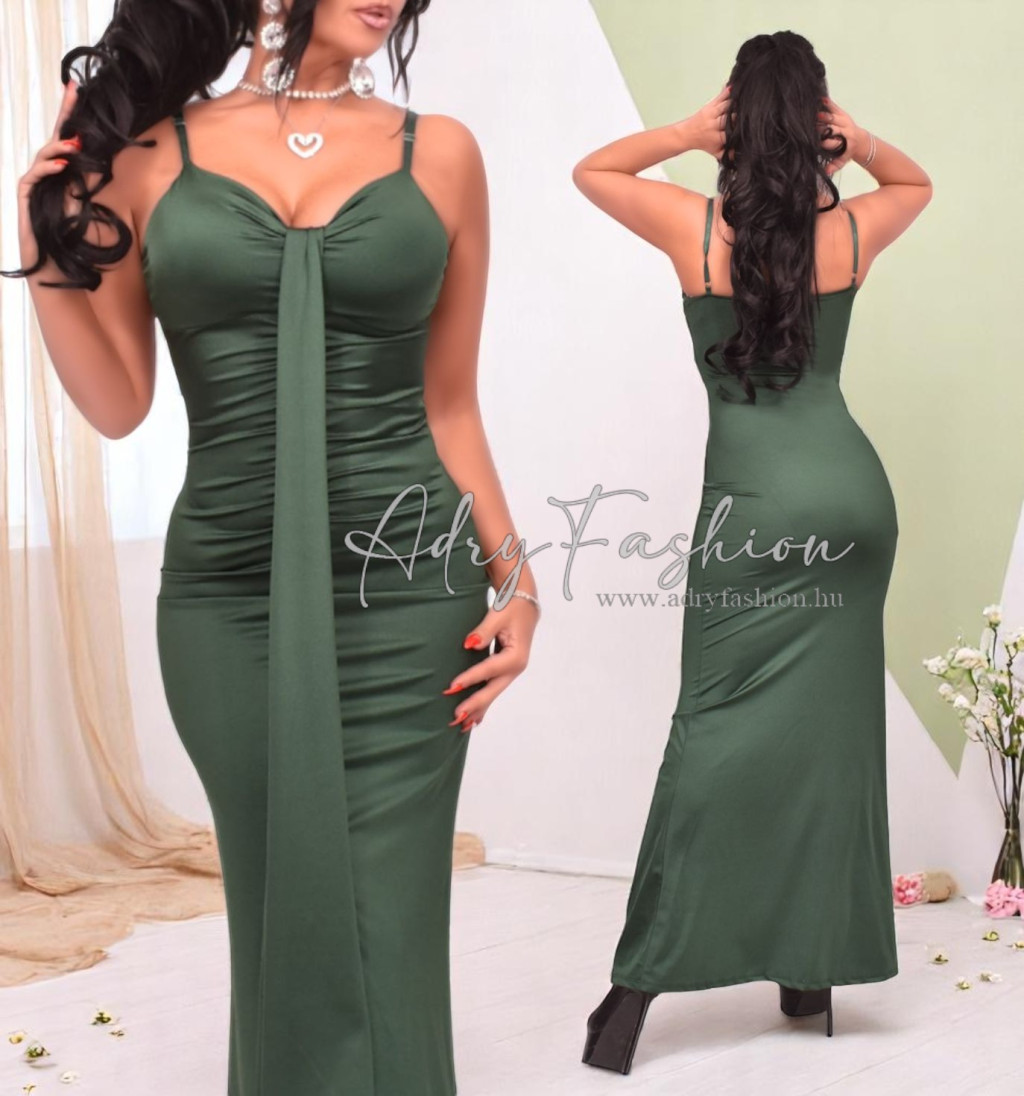 Celeste Sötét zöld elöl húzott alkalmi ruha