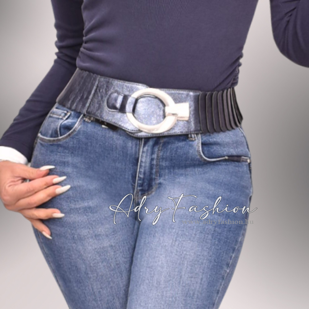 Kék fényes pikkelyes gumis öv ezüst színű ovál fém színű csattal
