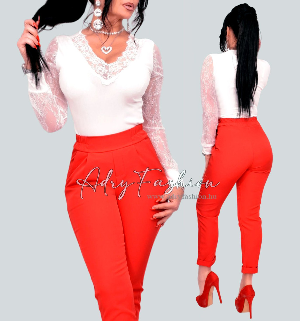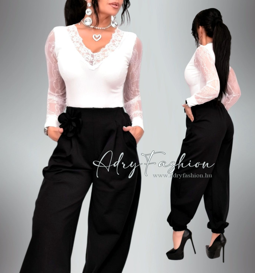 Fehér bordás csipke díszes felső