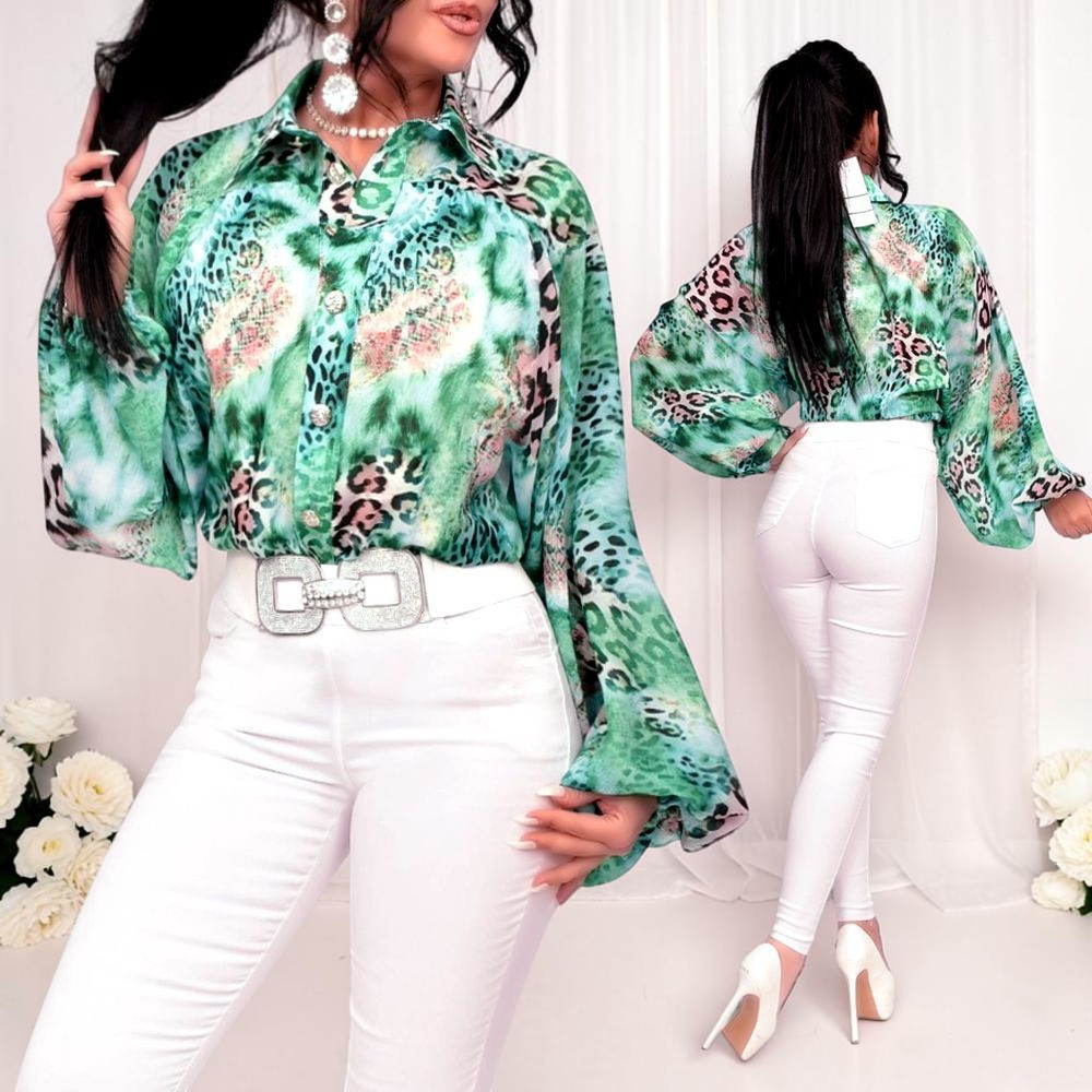 Zöld Párduc mintás női hosszított blúz