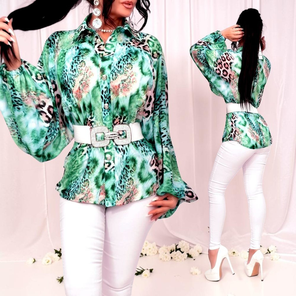 Zöld Párduc mintás hosszított ing blúz öv nélkül