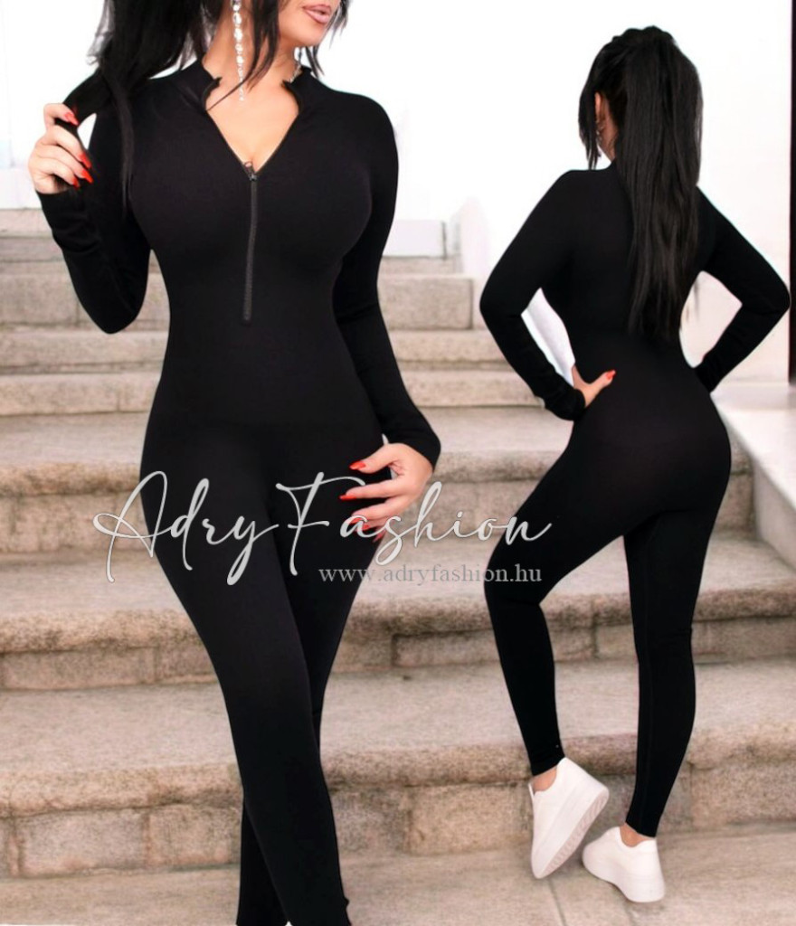 Fekete bordás sztreccs overál
