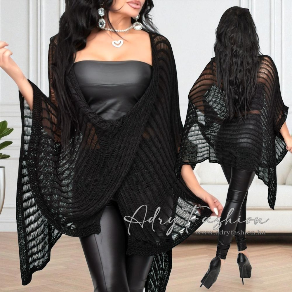 Ivett Fekete színű horgolt mellnél csavart divatos tunika kardigán