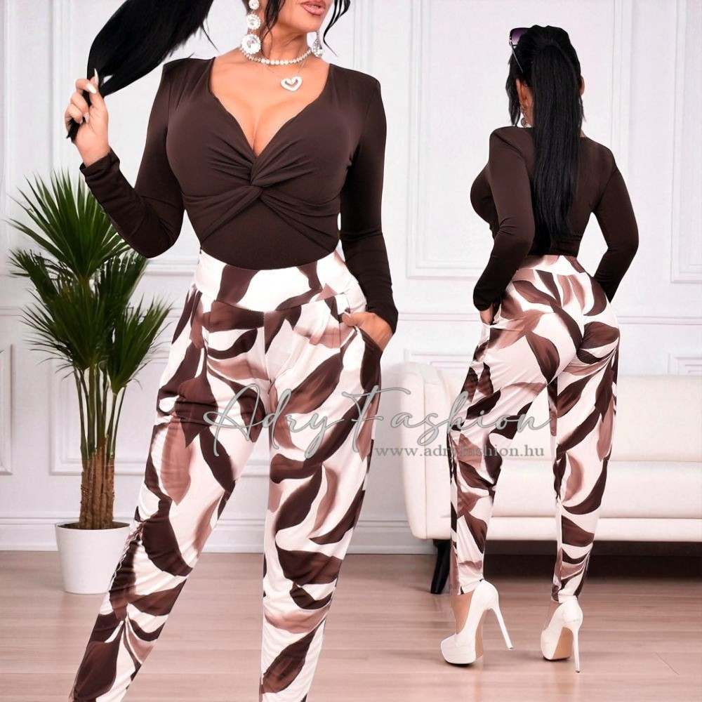 Ketrin barna mintás jégselyem nadrágFONTOS! MINTÁS ANYAG, TÖBB DARAB ÉRKEZIK BELŐLE ÉS CSAK EGYET FOTÓZUNK BE ,ÍGY A FOTÓN LÉVŐ TERMÉK MINTÁJA MÁSHOVA ESHET MINT AMIT A CSOMAGBA KÜLDÜNK!Méret nélküli termék S / M / L méretre ajánlott ( 36 / 38 / 40 )Lemért adatok : Nadrág : Gumis derekúDerék 37 - 52 cm * 2 körméretHossz : 99 cmÜlep : 26 cmAnyagösszetétel : 95 % poliészter 5% elasztán hideg hatású anyag jégselyem hatásúKiszállítás 1-2 munkanapAdryFashion Ruha webshop