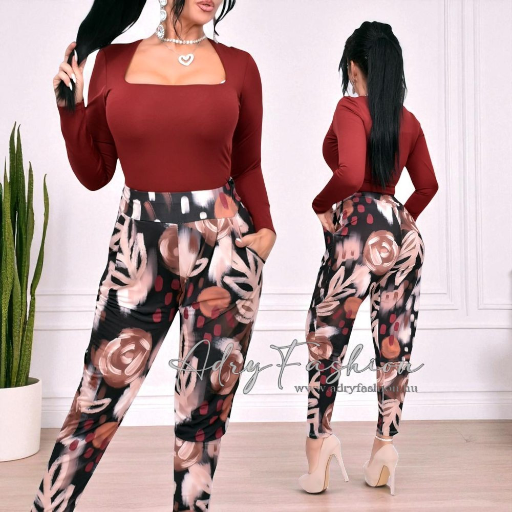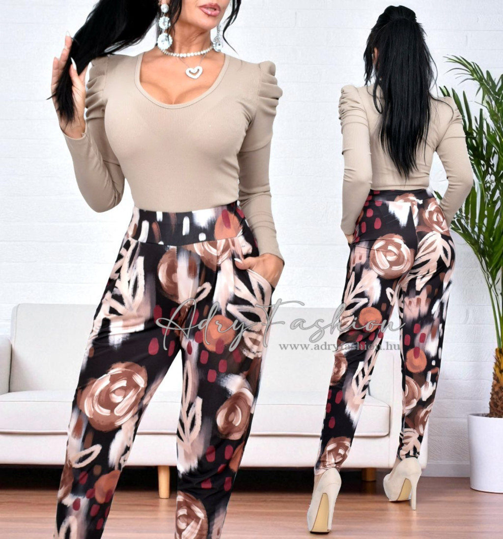 Ketrin fekete barna bordó mintás jégselyem nadrág