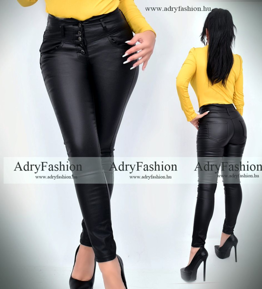 Kiara Fekete magas derekú bőrhatású sztreccs női nadrág kis méret