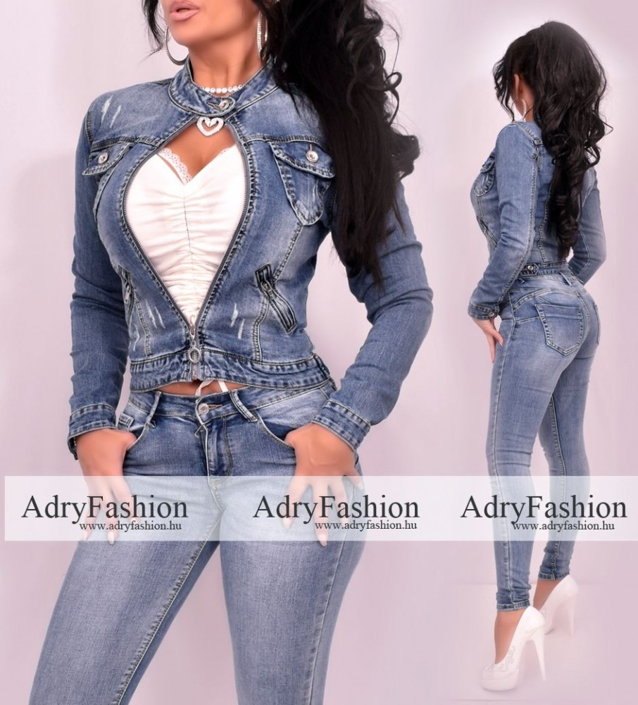 Közép Kék koptatott cipzáros állógalléros farmer dzseki