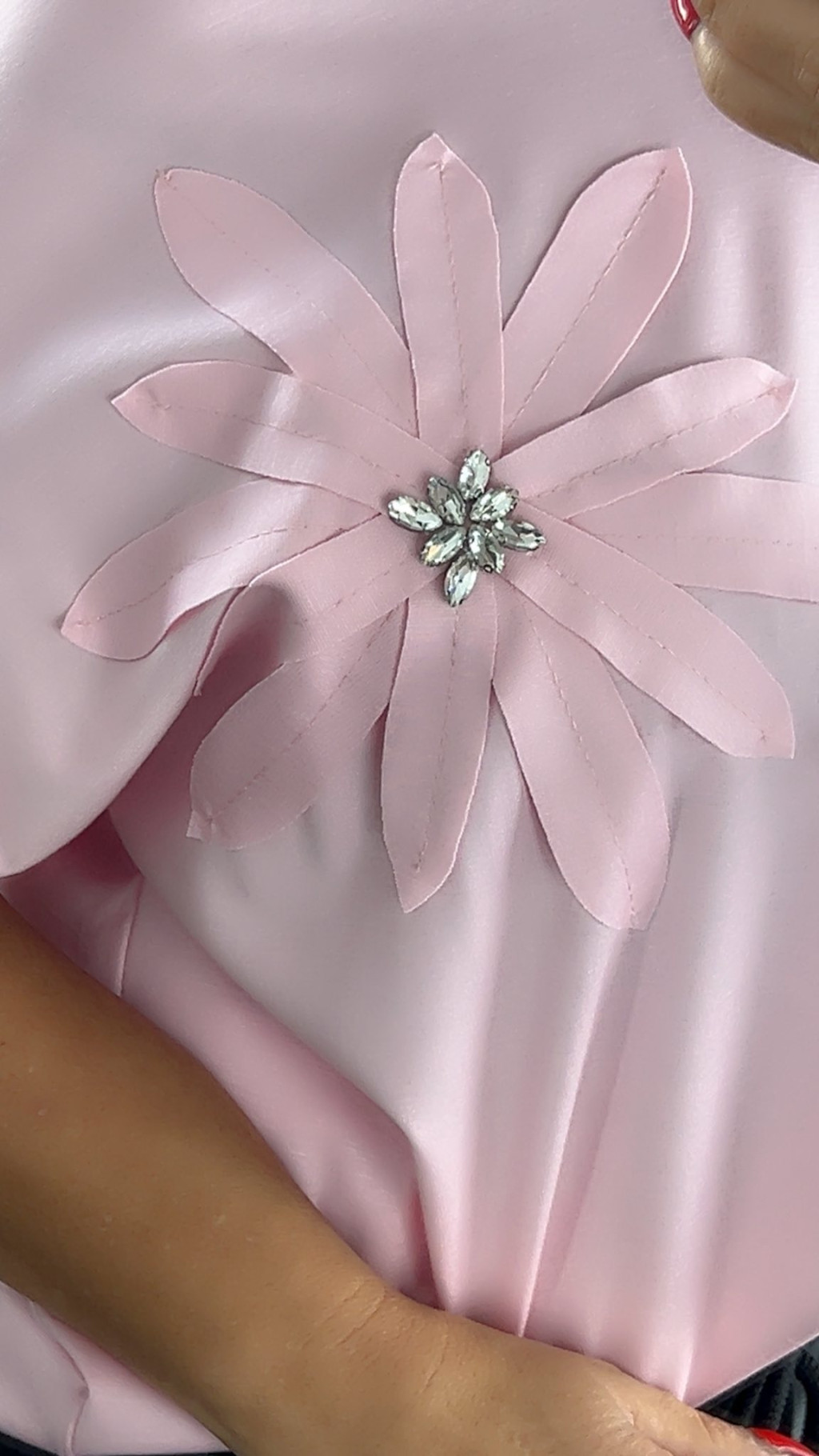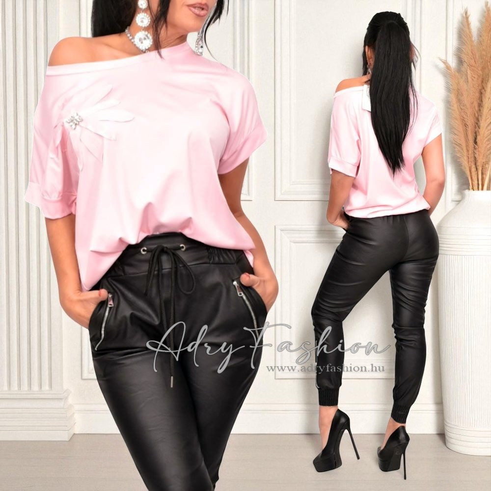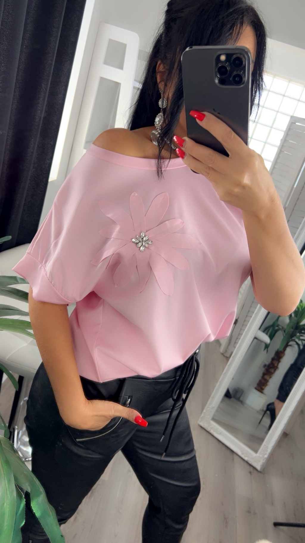 LILI Rózsaszín pamut virág és strassz díszes női felső