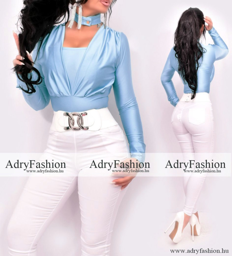 Mandy világoskék színű fényes body nyakpánt dísszel