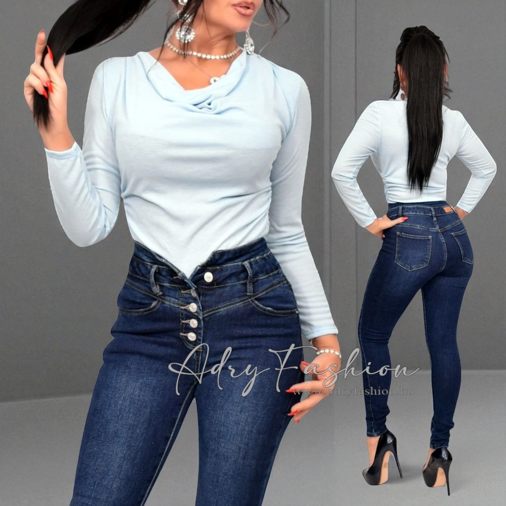 Maya Baba kék vékony kötött  kámzsás felső