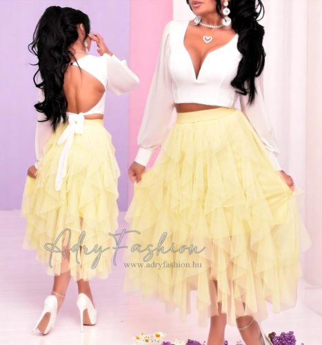 Fehér női topp muszlin ujjal hátul megkötővel felsőő