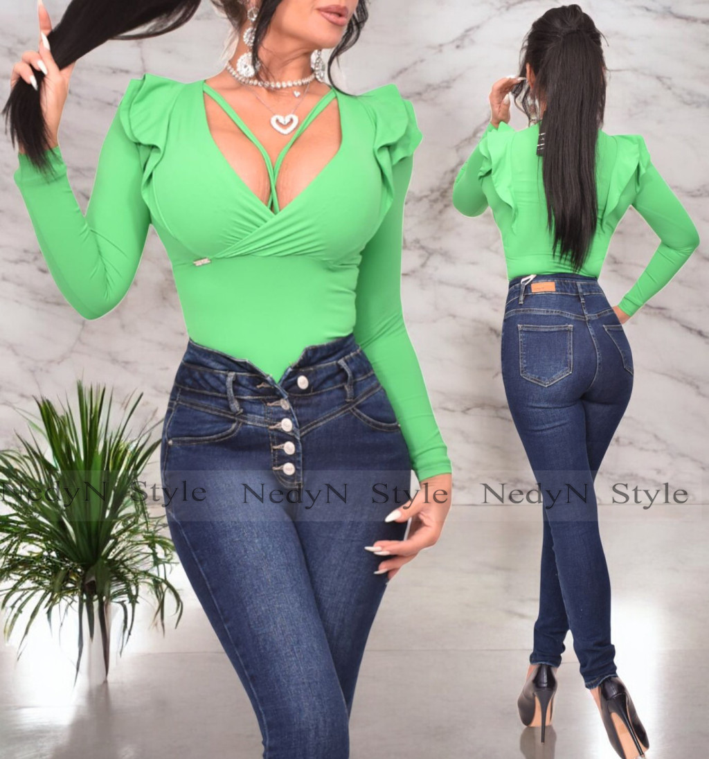 NedyN brazil zöld duplafodros pántos női felső