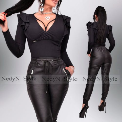 NedyN fekete átlapolt dupla fodros poliamid felső