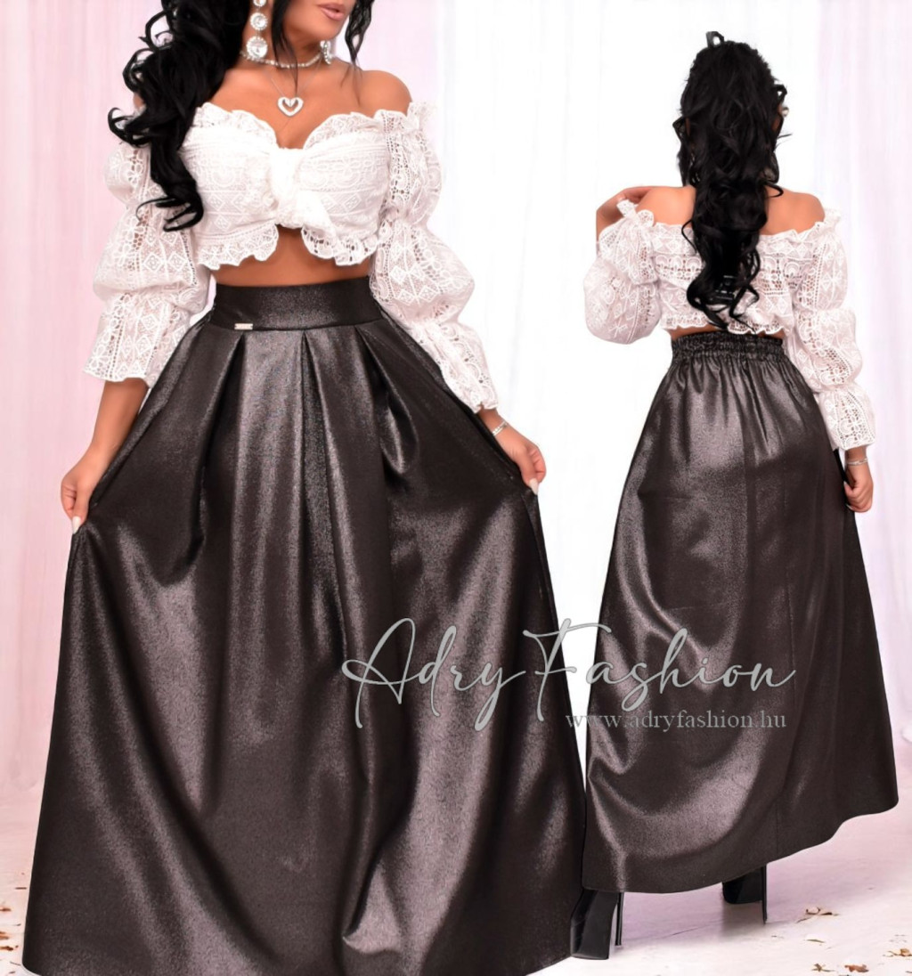 NedyN fekete csillogós zsebes Maxi szoknya alkalmi női szoknya