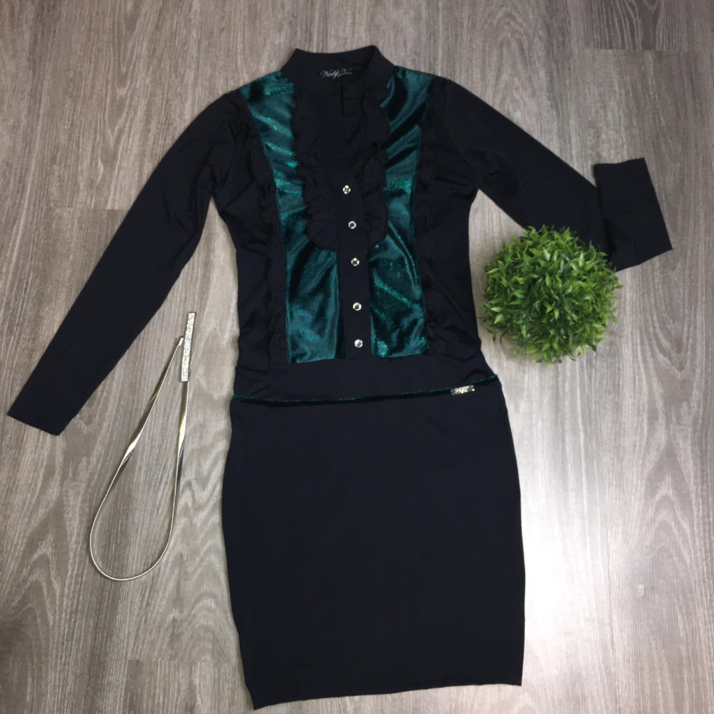 NedyN fekete zöld csillogós plüss betétes zsabós ruha