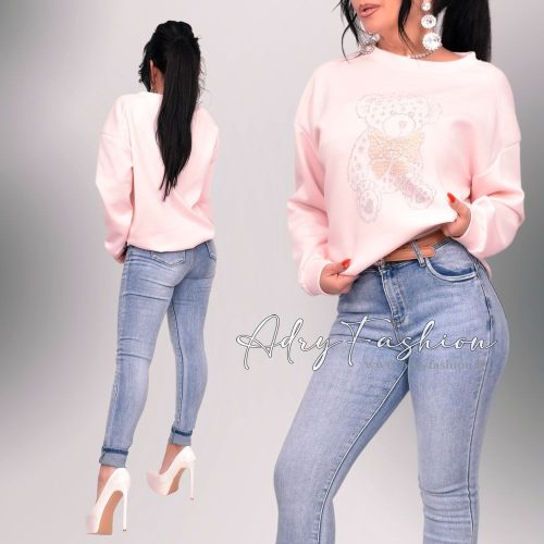 Púder rózsaszín színű maci mintás strasszos női felső tunika