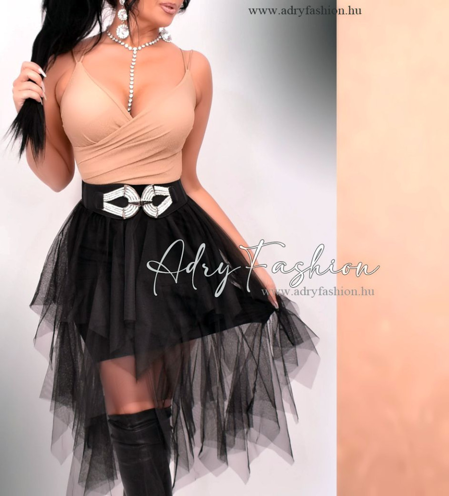 Rony Fekete színű alkalmi tüll szoknya cikk cakk női szoknya