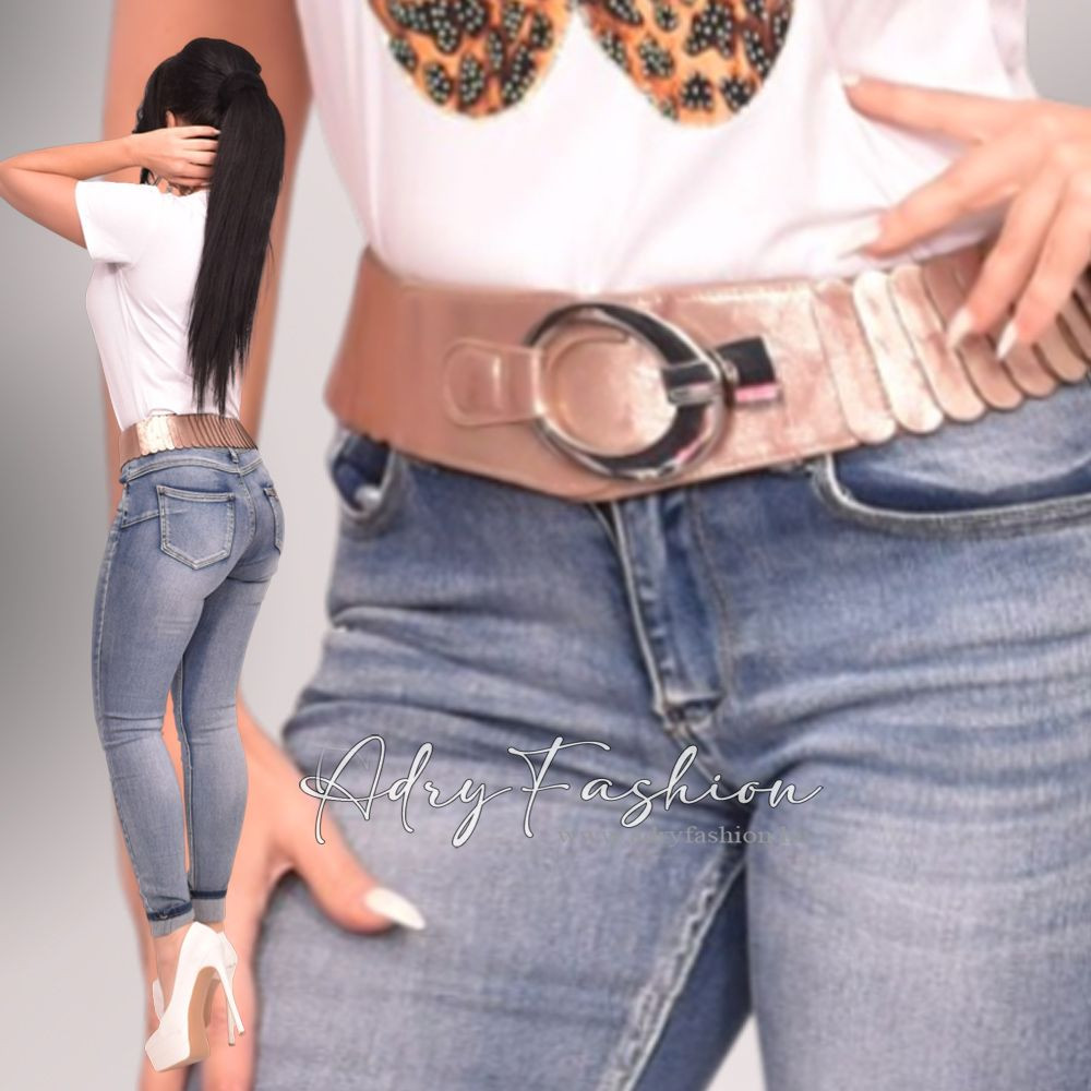 Rose Gold pikkelyes gumis öv ezüst színű ovál fém színű csattal