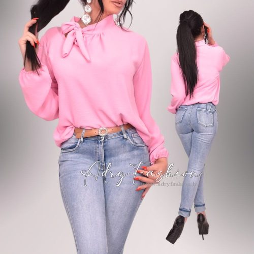 Rózsaszín színű gyűrt hatású blúz felső nyaknál masnis megkötővel