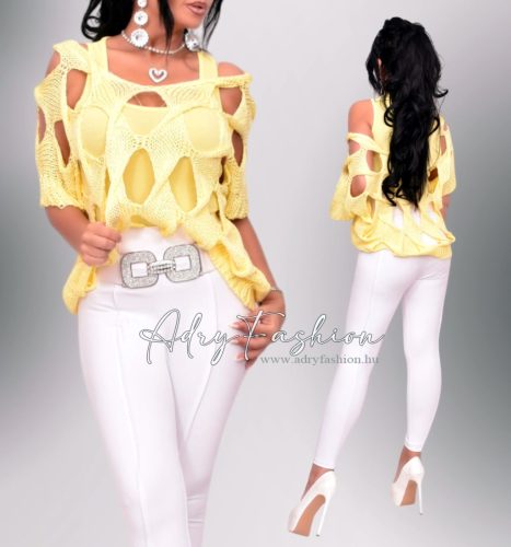 Sárga rombusz mintás kötött felső trikóval