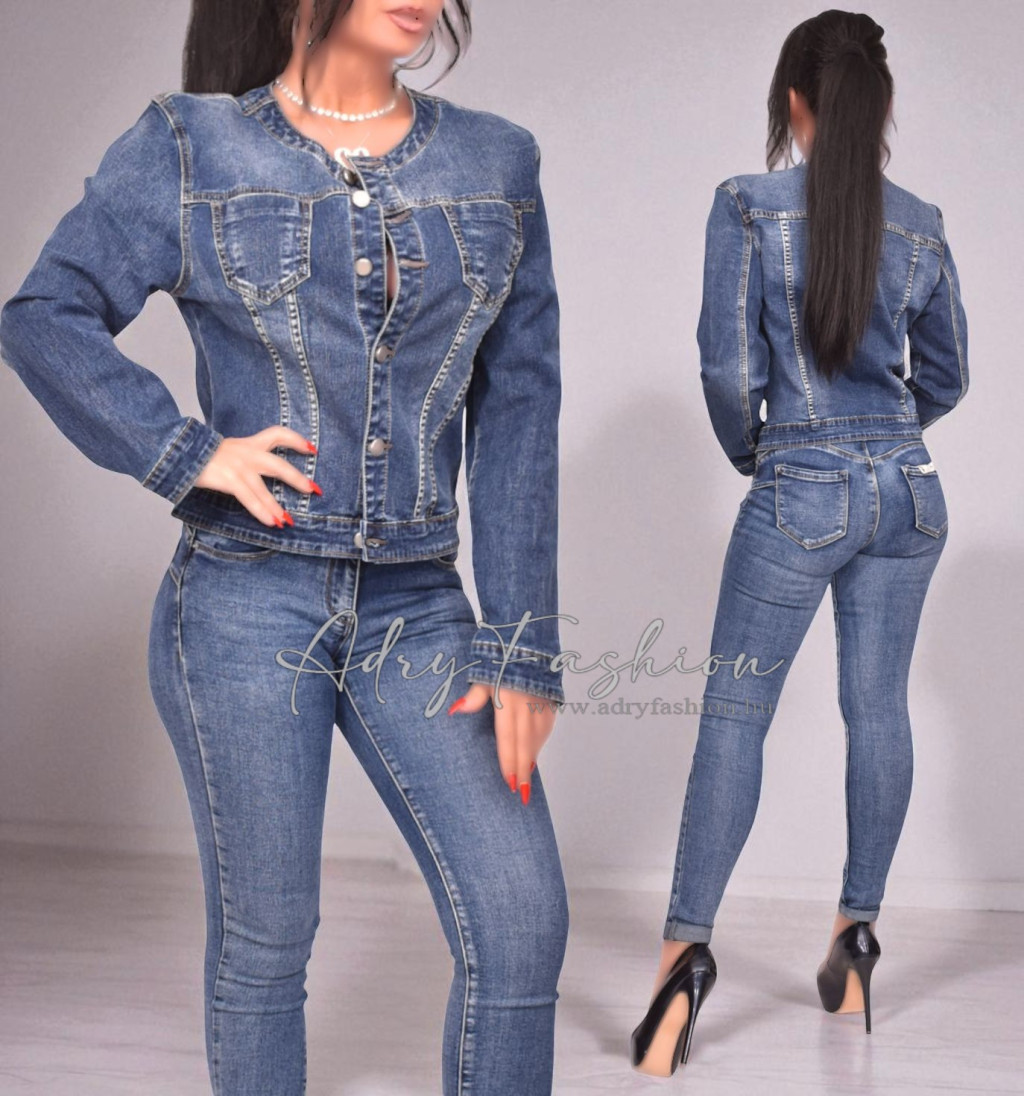 Sötétkék kerek galléros farmer dzseki L-es